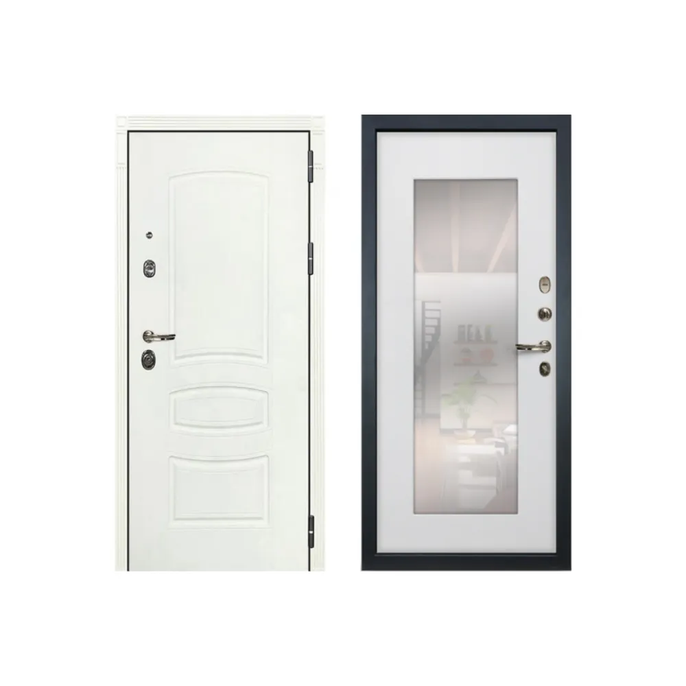 Металлическая дверь Лекс Легион Белая с зеркалом белый ясень ( панель №37)